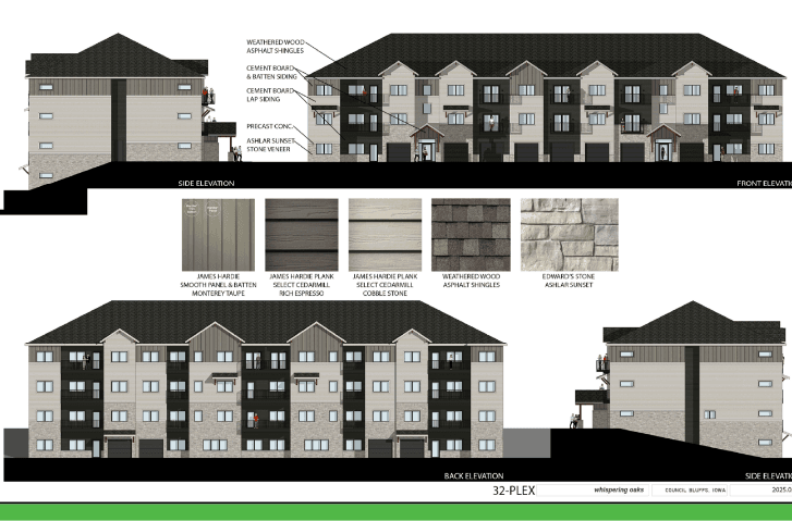 ABOUT: Whispering Oaks is a multi-family community located on a 10.7-acre site along Greenview Rd. This community will consist of three 32-Plex and six 9-Plex buildings for a total of 150 units. Other scope of work includes three detached garages and a clubhouse with a full fitness center, dog wash facility, and a swimming pool.